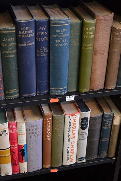 THREE SHELVES OF BIOGRAPHIES INCLUDING LORD BALFOUR OF BURLEIGH, H.G. WELLS, ETC.
