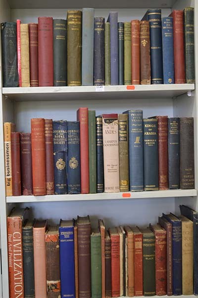 THREE SHELVES OF VINTAGE BOOKS RELATING TO MEDICINE, SCIENCE AND HISTORY INCLUDING ''THE SCHOOL FOR DICTATORS''