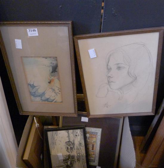 GROUP OF ASSORTED ARTWORKS INCLUDING AFTER PEARS PRINT AND BOATING SCENE