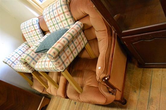A THREE SEAT TAN VELOUR SOFA