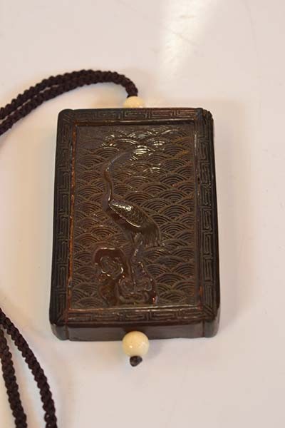 CHINESE CARVED HORN PLAQUE DEPICTING A STORK