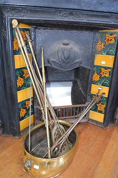 A COLLECTION OF ANTIQUE BRASS FIRE TOOLS