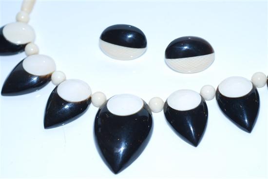 AN IVORY AND HORN NECKLACE AND EARRING SUITE