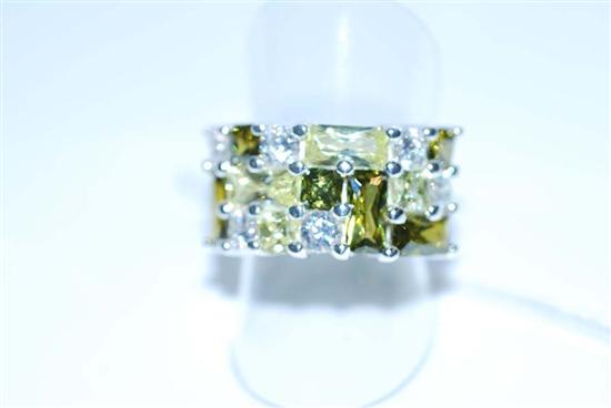 A GREEN CUBIC ZIRCONIA SET DRESS RING IN STERLING SILVER