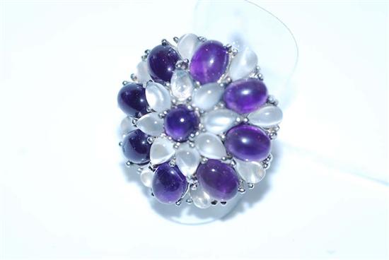 AN AMETHYST AND MOONSTONE DRESS RING IN STERLING SILVER