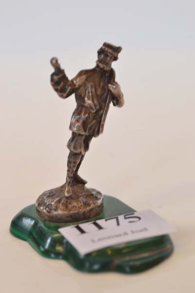 SMALL 19TH CENTURY MOSCOW SILVER FIGURE OF A WORKMAN MOUNTED ON MALACHITE BASE, MARKED 88