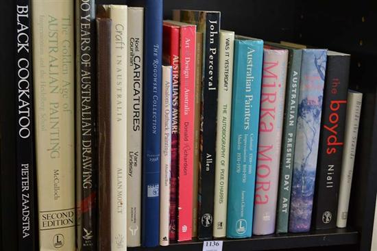 ONE SHELF OF AUSTRALIAN ART REFERENCE INCLUDING 'ONE HUNDRED YEARS OF AUSTRALIAN DRAWING', 'JOHN PERCEVAL' ETC
