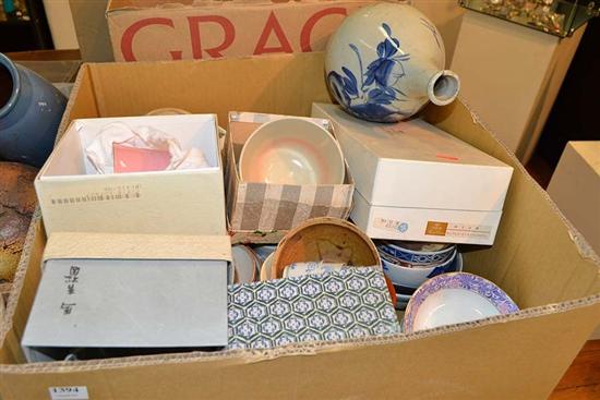 TWO BOXES OF CHINA AND CERAMICS INCLUDING JAPANESE, TEA WARE ETC