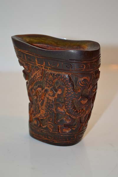 AN ANTIQUE NICKEL BOUND GLAZED DISPLAY CABINET ON CAST IRON FEET, 182CM WIDE X 92CM HIGH X 53CM DEPTH