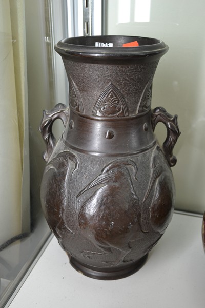 TALL JAPANESE CERAMIC TWO HANDLED VASE (CHIPS TO BASE)