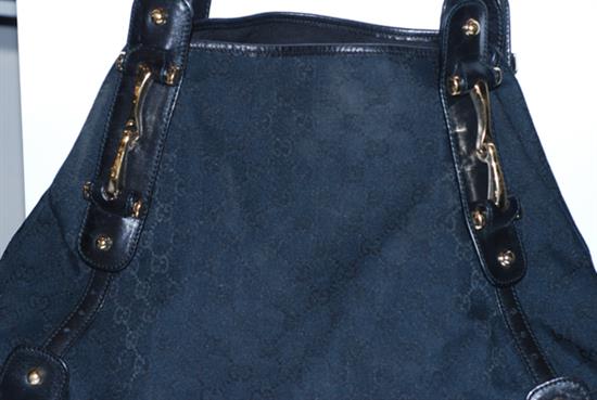 A BLACK CANVAS HANDBAG BY GUCCI SERIAL NUMBER 137621-000925