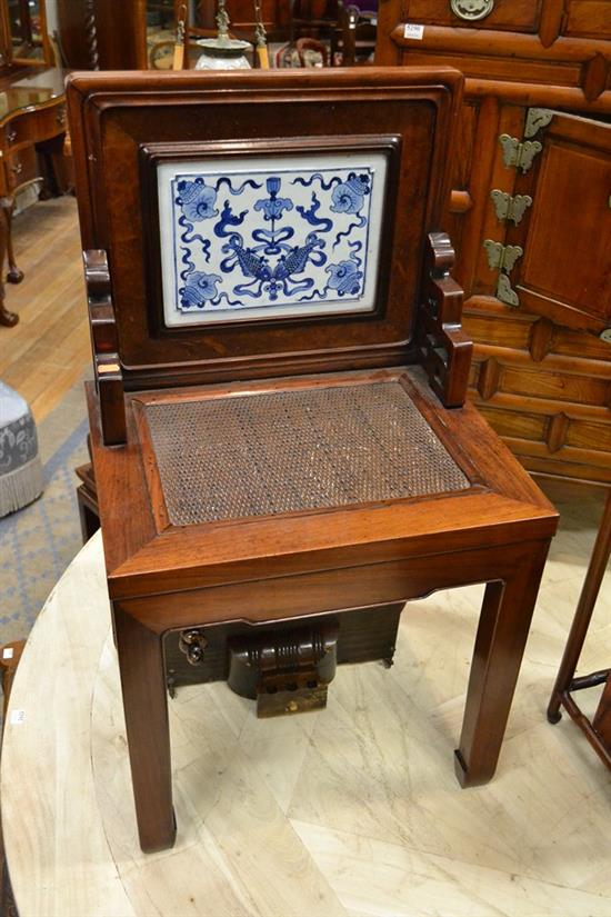 A PAIR OF CHINESE ARM CHAIRS WITH PORCELAIN INSERTS