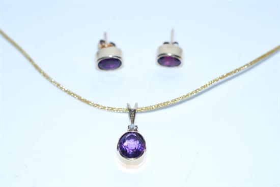 A PAIR OF AMETHYST EARRINGS AND PENDANT IN 9CT GOLD