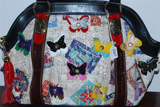 A HANDBAG BY MARINO ORLANDI STYLED IN LEATHER WITH MULTI-COLOURED DESIGN