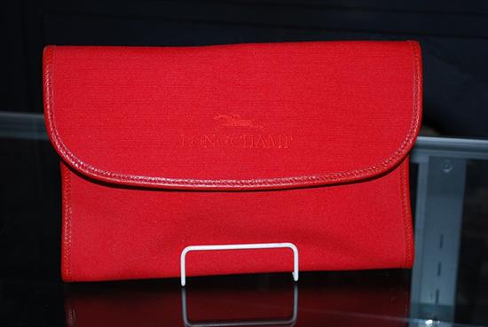 A RED CANVAS HANDBAG BAG BY LONGCHAMP WITH RED LEATHER INTERIOR, A/F
