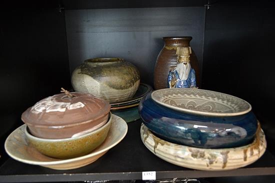 COLLECTION OF ORIENTAL CERAMICS INCLUDING STUDIO VASES, LIDDED BOWL ETC