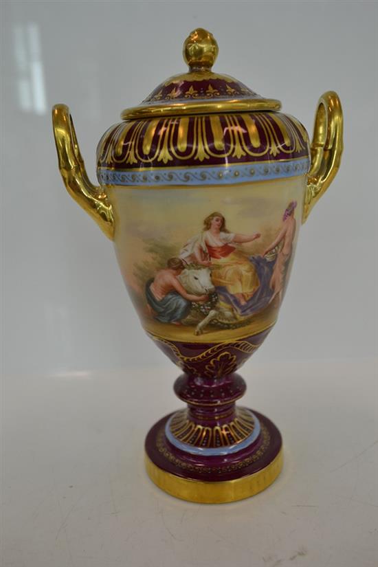 SMALL TWO HANDLED VIENNA PORCELAIN LIDDED VASE