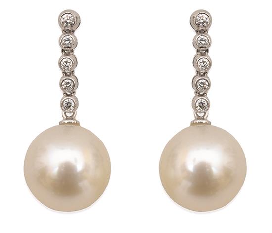 A PAIR OF SOUTH SEA PEARL AND DIAMOND EARRINGS