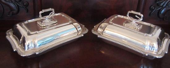 A PAIR OF EDWARDIAN STERLING SILVER LIDDED TUREENS, MAKER'S MARK H.W, SHEFFIELD CIRCA 1907, 24.5CM WIDE