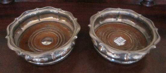 A PAIR OF SHEFFIELD PLATE WINE COASTERS, 15CM DIAMETER
