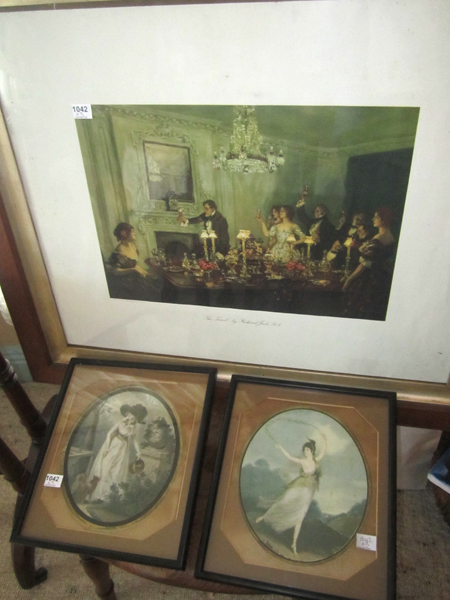 A PAIR OF PRINTS DEPICTING LADIES OF LEISURE AND A FACSIMILE PRINT 'THE TOAST' BY RICHARD JACK
