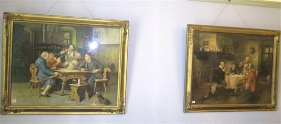 A PAIR OF GILT FRAMED PRINTS DEPICTING TAVERN SCENES, 54.5 X 69.5 CM