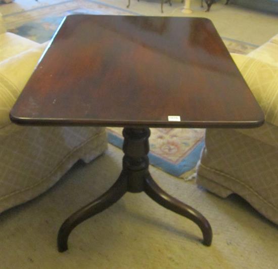 A RECTANGULAR TOP WINE TABLE WITH A 19TH CENTURY TRIPOD BASE, 74.5 X 71 CM