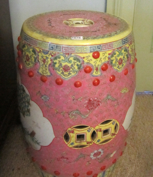 A CHINESE ENAMELLED CERAMIC BARREL STOOL, 49CM HIGH