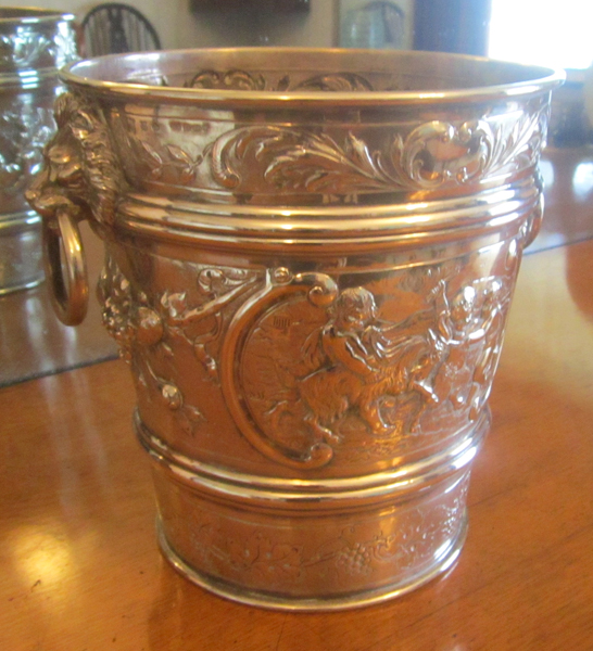 A CONTINENTAL SILVER ICE BUCKET WITH BRITISH IMPORT MARKS, EMBOSSED DECORATION, HALLMARKED 925, 22 CM HIGH