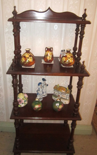 A VICTORIAN STYLE MAHOGANY FOUR TIER WHAT-NOT, 56 X 135 CM