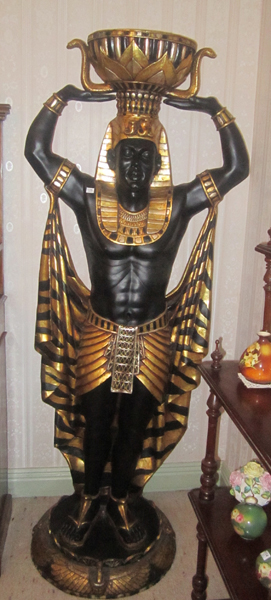 A PAIR OF COMPOSITE FLOOR STANDING FIGURES DEPICTING EGYPTIAN MALE AND FEMALE, 185 CM TALL (EACH)