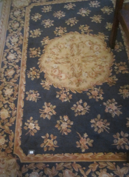 TWO FLORAL PATTERNED RUGS, ONE ON A PALE BLUE GROUND, THE OTHER ON A GREEN GROUND, THE LARGEST 243 X 169 CM