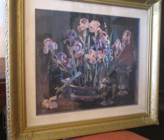 B.E. MINNS, 1926, STILL LIFE WITH IRISES, WATERCOLOUR, 36 X 42.5 CM
