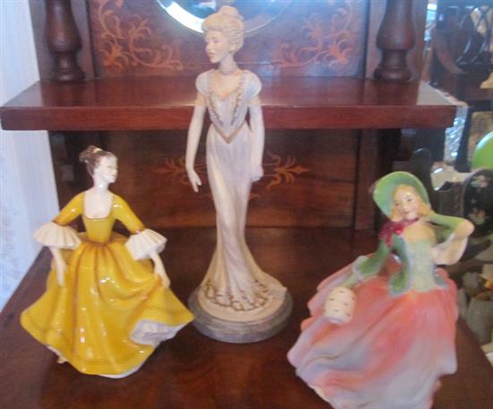 TWO ROYAL DOULTON FIGURES 'AUTUMN BREEZES' AND 'STEPHANIE', AND A COMPOSITE CLASSIQUE BY ROYAL DOULTON FIGURE, THE TALLEST 28CM HIGH