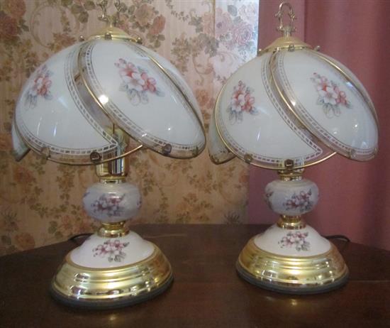 A PAIR OF MODERN BRASS MOUNTED LAMPS WITH BRASS SHADES, 41CM HIGH38CM HIGH