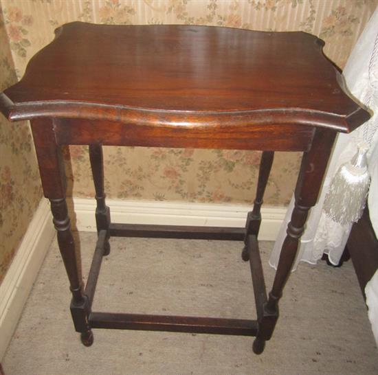 AN OAK SIDE TABLE WITH A SHAPED RECTANGULAR TOP, 57 X 72 X 41CM