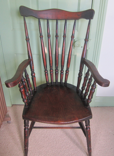 A 19TH CENTURY ENGLISH ELM SPINDLE BACK ARMCHAIR