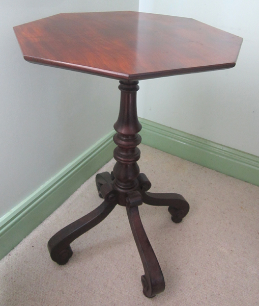 A TRIPOD BASED OCTAGONAL TOP WINE TABLE, 50CM WIDE X 71CM HIGH