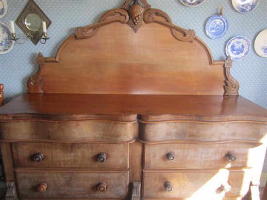 A 19TH CENTURY MAHOGANY SIDEBOARD, WITH A SERPENTINE TOP, TWO FRIEZE DRAWERS AND FOUR LOWER DRAWERS, 183 X 175 X 55CM