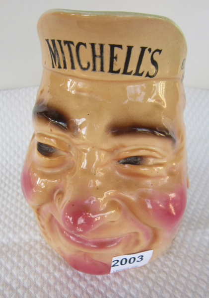 AN ENGLISH MITCHELLS OLD IRISH WHISKY CHARACTER JUG, 16CM HIGH