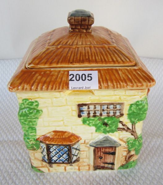 A BESWICK COTTAGE WARE LIDDED BISCUIT BARRELL