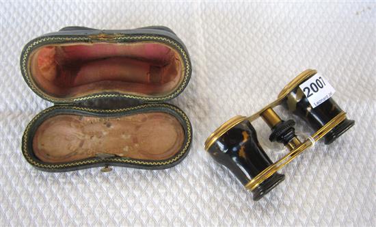 A PAIR OF 19TH CENTURY TORTOISESHELL LADY'S BINOCULARS, WITH LEATHER CASE