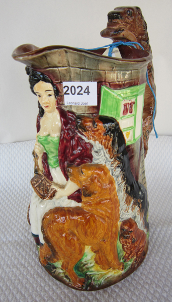 AN ENGLISH BURLEIGH WARE CHARACTER JUG, A LATER COPY OF 'OLD FEEDING TIME' BY SAMUEL ALCOCK, 26CM HIGH