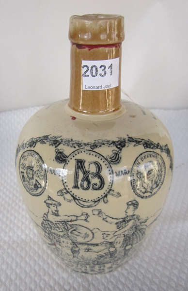 AN EARLY 20TH CENTURY SCOTTISH STONE WARE WHISKY JUG, ' GRAY BEARD', 19 CM HIGH, SOME SMALL LOSSES