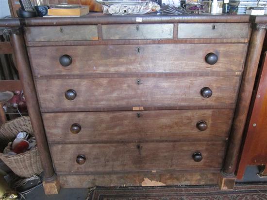 THREE VINTAGE CHESTS OF DRAWERS, ONE WITH LOWER CUPBOARD, IN VARIOUS STATES OF REPAIR