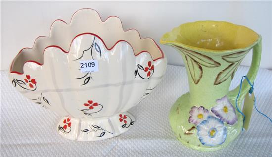 TWO VINTAGE ENGLISH PIECES OF POTTERY, A VASE AND JUG, 19 AND 21 CM HIGH