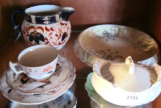 FOUR PIECES OF ENGLISH CERAMIC WARE, INCLUDING JUG, TRIO, LIDDED BOWL AND STAND