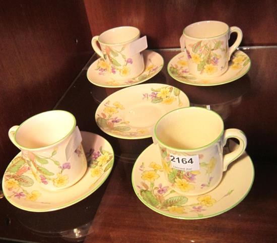 NINE PIECES OF ROYAL DOULTON FOUR DEMI TASSE AND SPARE SAUCER