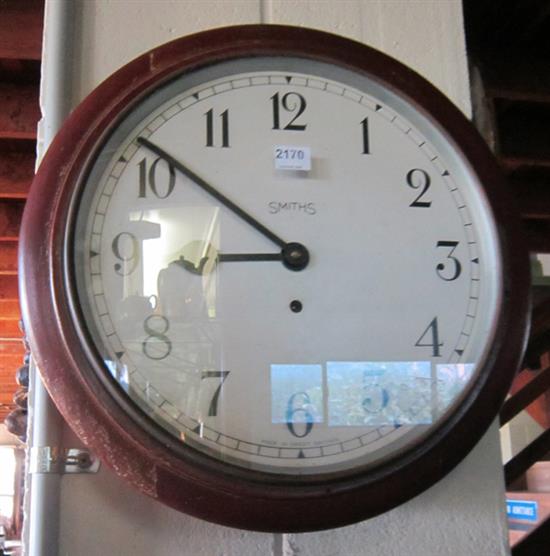 AN ENGLISH SMITHS WALL CLOCK, TIME ONLY WITH ROUND WOODEN CASE, WHITE DIAL 35 CM DIAMETER