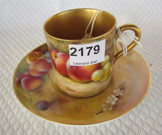 A ROYAL WORCESTER FRUIT DEMI TASSE, COFFEE CUP SIGNED POWELL, SAUCER H AYRTON